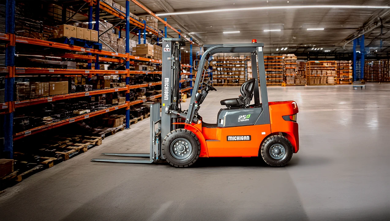Com zero emissão de poluentes, a Empilhadeira Elétrica E25-45T da Michigan combina tecnologia, eficiência e sustentabilidade. Compacta e versátil, é a escolha ideal para maximizar a produtividade em espaços reduzidos.